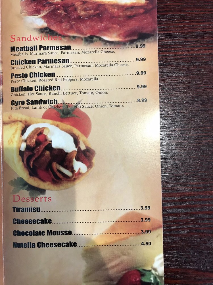 Pita bread, lamb or chicken, tzatziki sauce, tomatoes and onion.
